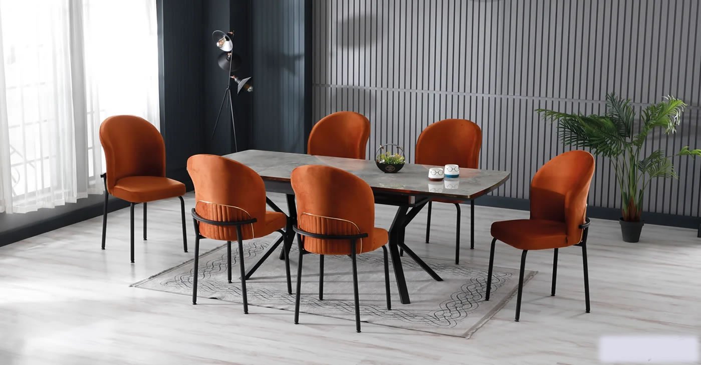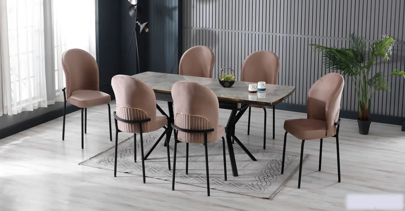 Ürünümüz: MDF Glossmax Tabla Masa, 6 Sandalye dir. Ürün Boyutu: Kapalı 80x130 CM - Açık 175x80 CM | Ürün malzeme detayları resimlerde mevcuttur. Silinebilir babyface kumaş, masa ve sandalye tüm renk seçenekleri mevcuttur. Sandalye ek istenirse adet fiyatı: 4.250 TL dir.